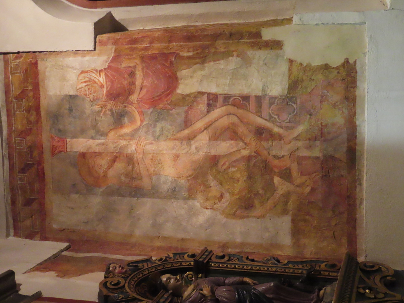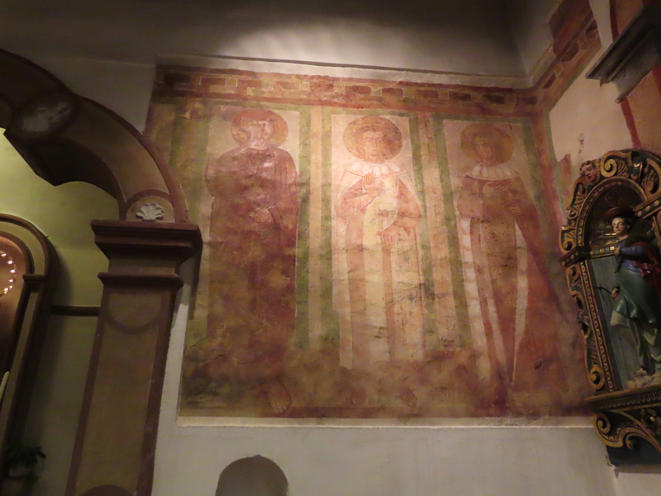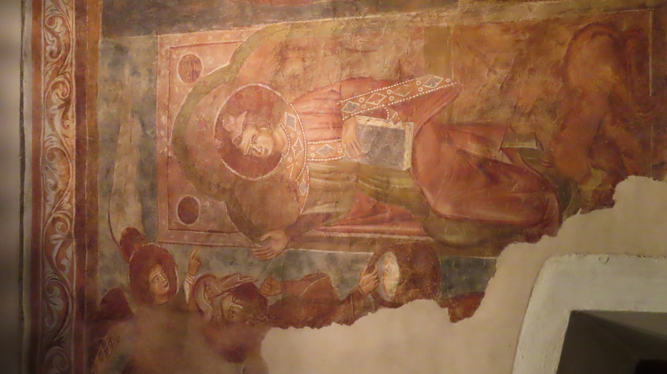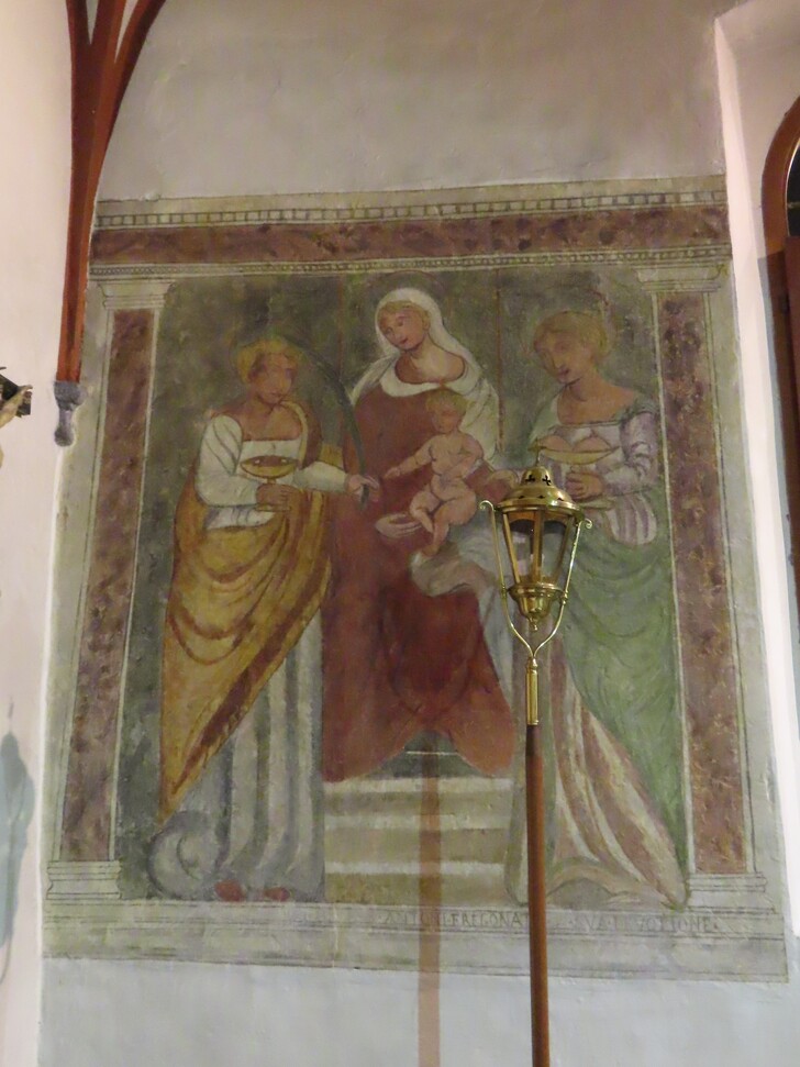 - A sinistra: piccolo affresco tardo cinquecentesco. Croce processionale