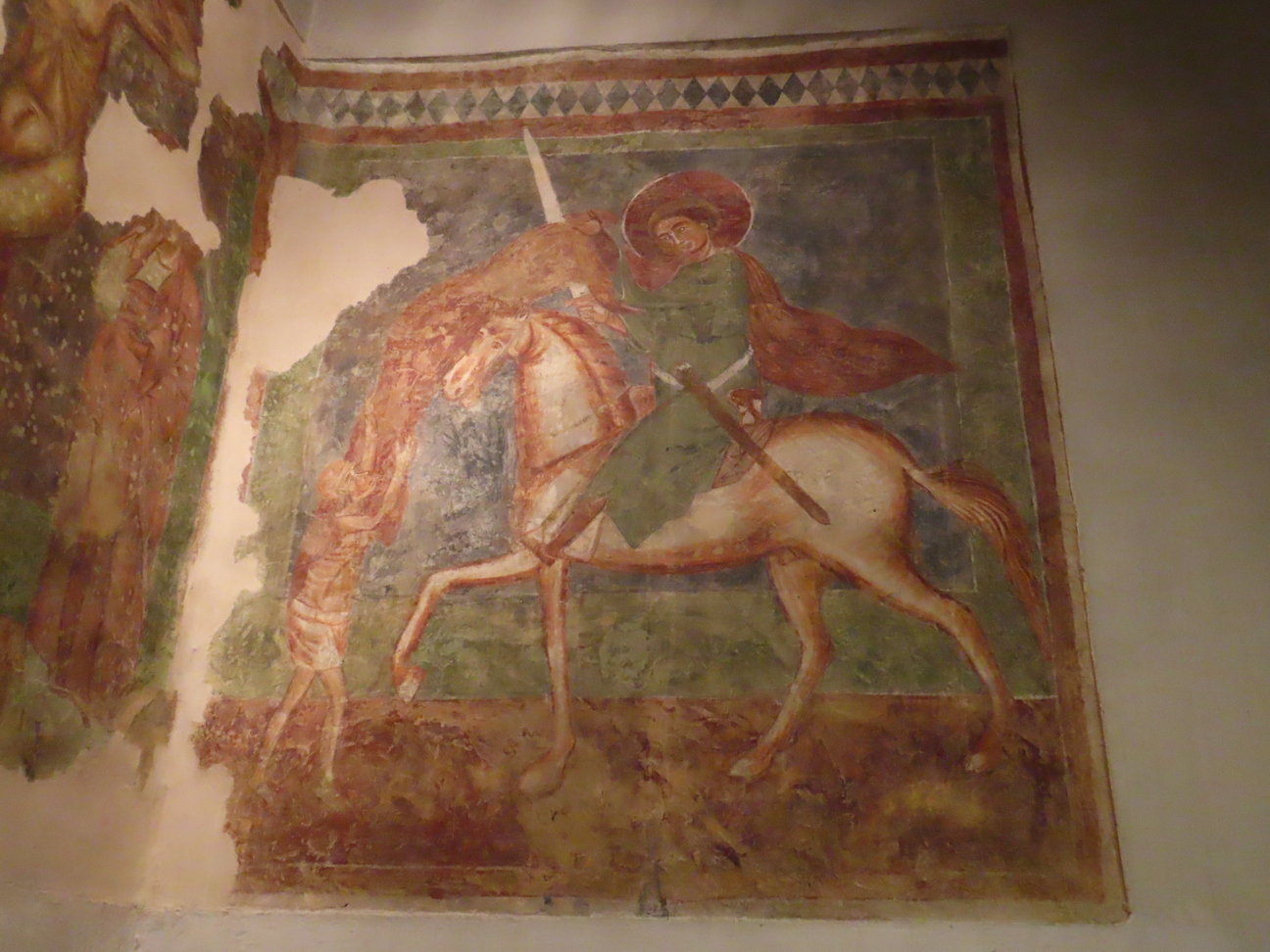 A destra: S. Martino che blocca il cavallo e taglia il mantello.