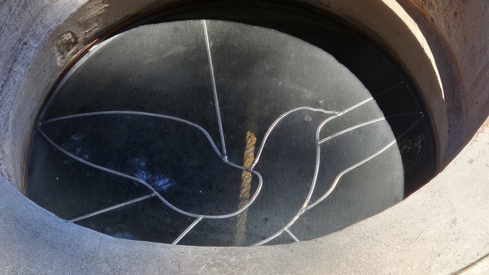 Sul timpano un oculo in vetro con effigiata una colomba stilizzata (F. Fiabane 1988).