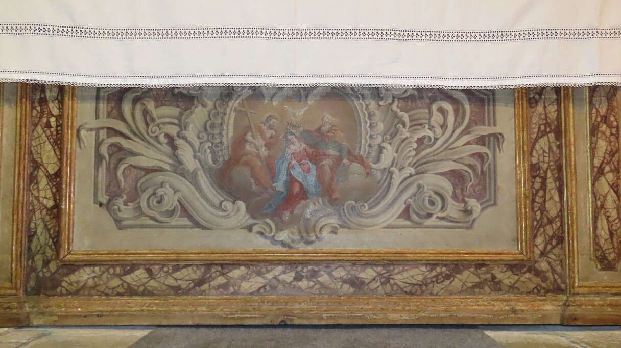 Dipinto su tela con gruppo centrale “Incoronazione di Maria”, opera di anonimo pittore bellunese del sec. XVIII°, sostituisce l’antico paliotto in cuoio lavorato.